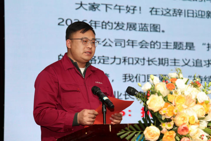 下午4:00,年会在庄严的奏唱国歌中拉开帷幕。公司副董事长、总经理李庆斌同志作年度工作报告,回顾2025年公司经营发展成效,明确2026年战略方向与重点任务,为全年工作定调聚力。随后,副总经理刘春明同志作制造板块工作报告,副董事长、副总经理闫名琛同志作销售板块工作报告,各板块系统复盘、部署,夯实全年发展根基。