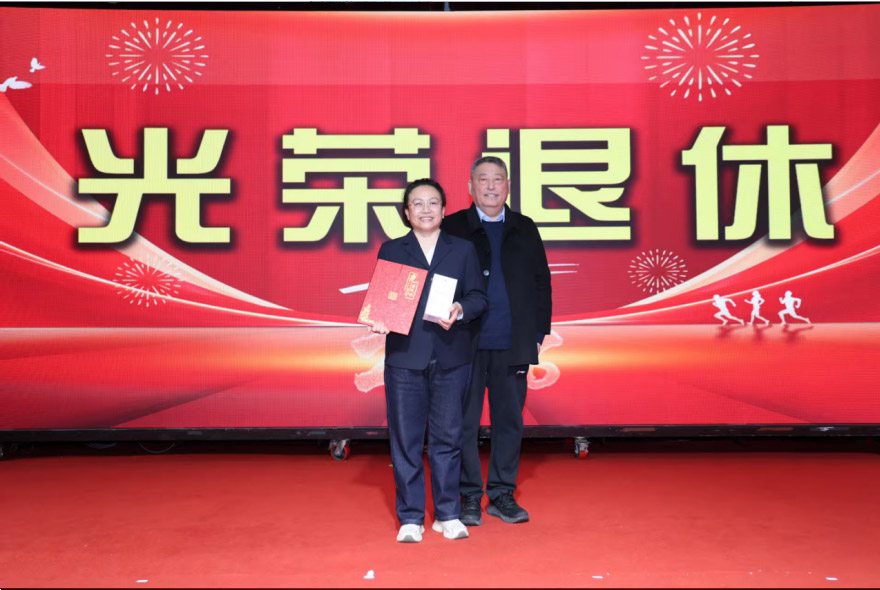 年会特别设置荣退仪式,向奉献企业的老员工致敬。董事长闫志忠同志为光荣退休的李琦同志颁发荣退证书,致以诚挚祝福与崇高敬意,传递企业温情与人文关怀。