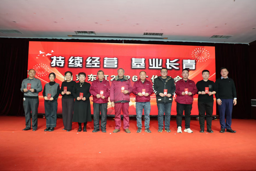 2026年2月8日,山东东虹以“持续经营 基业长青”为主题的2026年工作年会于青州市贝隆花园大酒店隆重举行。公司全体员工、退休职工代表欢聚一堂,总结过往、表彰、擘画新篇,共赴年度盛会。